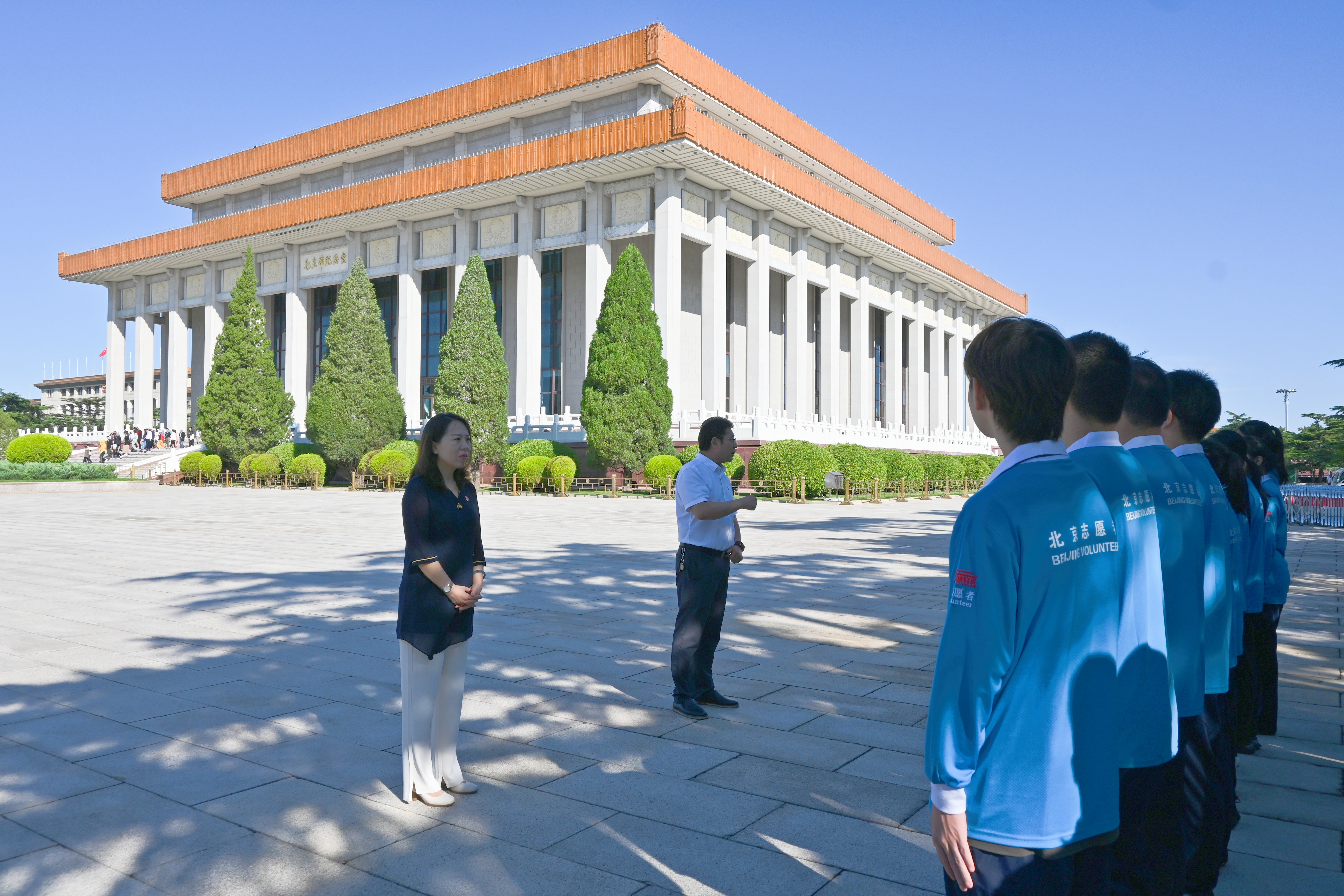 一行人同志愿者一起為毛主席坐像敬獻(xiàn)花束,瞻仰毛主席遺容,表達(dá)對偉大領(lǐng)袖毛主席的緬懷和敬意,在志愿者服務(wù)各個崗位詳細(xì)了解志愿者們的服務(wù)情況及生活情況。