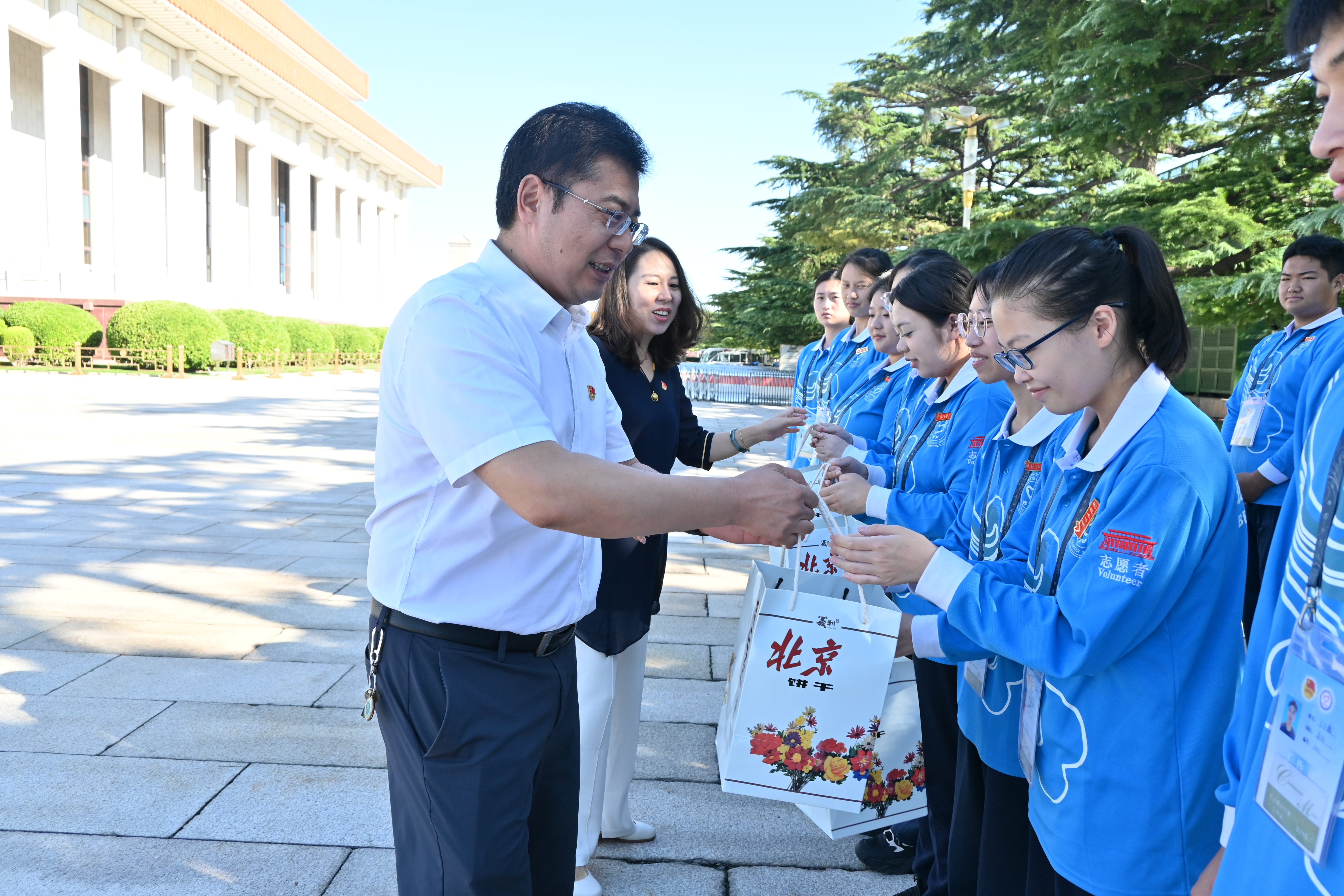 9月12日,北京輕工技師學(xué)院黨委書記、院長張根嶺,一輕控股團(tuán)委副書記黃娟娟,技師學(xué)院黨委副書記、紀(jì)委書記、工會主席吳丹,技師學(xué)院團(tuán)委書記種楊,團(tuán)市委企業(yè)部、北京市志愿服務(wù)指導(dǎo)中心項目部相關(guān)同志一行慰問北京輕工技師學(xué)院參與毛主席紀(jì)念堂志愿服務(wù)的在崗志愿者,并與毛主席紀(jì)念堂管理局瞻仰接待處處長馬恒祥交流參與毛主席紀(jì)念堂志愿活動的情況。