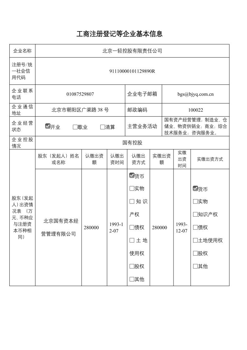 工商注冊(cè)登記等企業(yè)基本信息