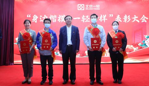 表彰大會(huì)上,播放了《身邊楷模 一輕榜樣》事跡短片。控股公司領(lǐng)導(dǎo)為3名北京市勞動(dòng)模范,1個(gè)北京市勞動(dòng)模范集體,14名“身邊楷模 一輕榜樣”先進(jìn)個(gè)人,9個(gè)“身邊楷模 一輕榜樣”先進(jìn)集體頒獎(jiǎng)。