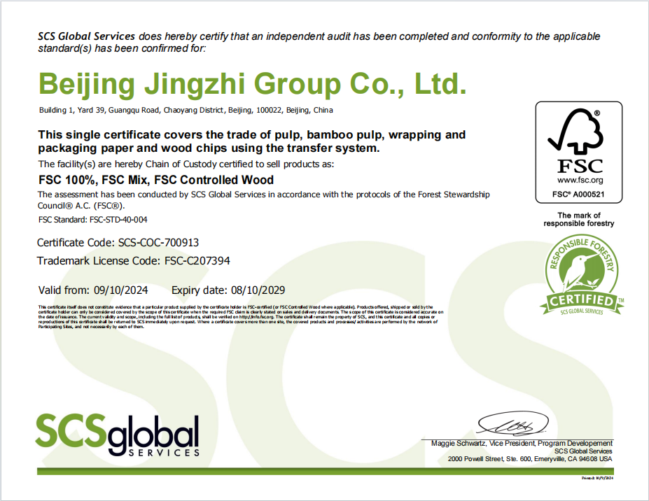 FSC認(rèn)證(森林管理委員會“ForestStewardshipCouncil”認(rèn)證)是全球最為權(quán)威且嚴(yán)格的森林認(rèn)證體系。其核心宗旨在于推動森林資源的可持續(xù)開發(fā)與利用,同時致力于生物多樣性的保護(hù)及森林生態(tài)平衡的維護(hù)。京紙集團(tuán)榮獲FSC權(quán)威認(rèn)證,意味著企業(yè)在森林資源管理方面達(dá)到了國際領(lǐng)先水平,進(jìn)一步提升了企業(yè)品牌價值和市場競爭力,為可持續(xù)高質(zhì)量發(fā)展注入了強勁動力。